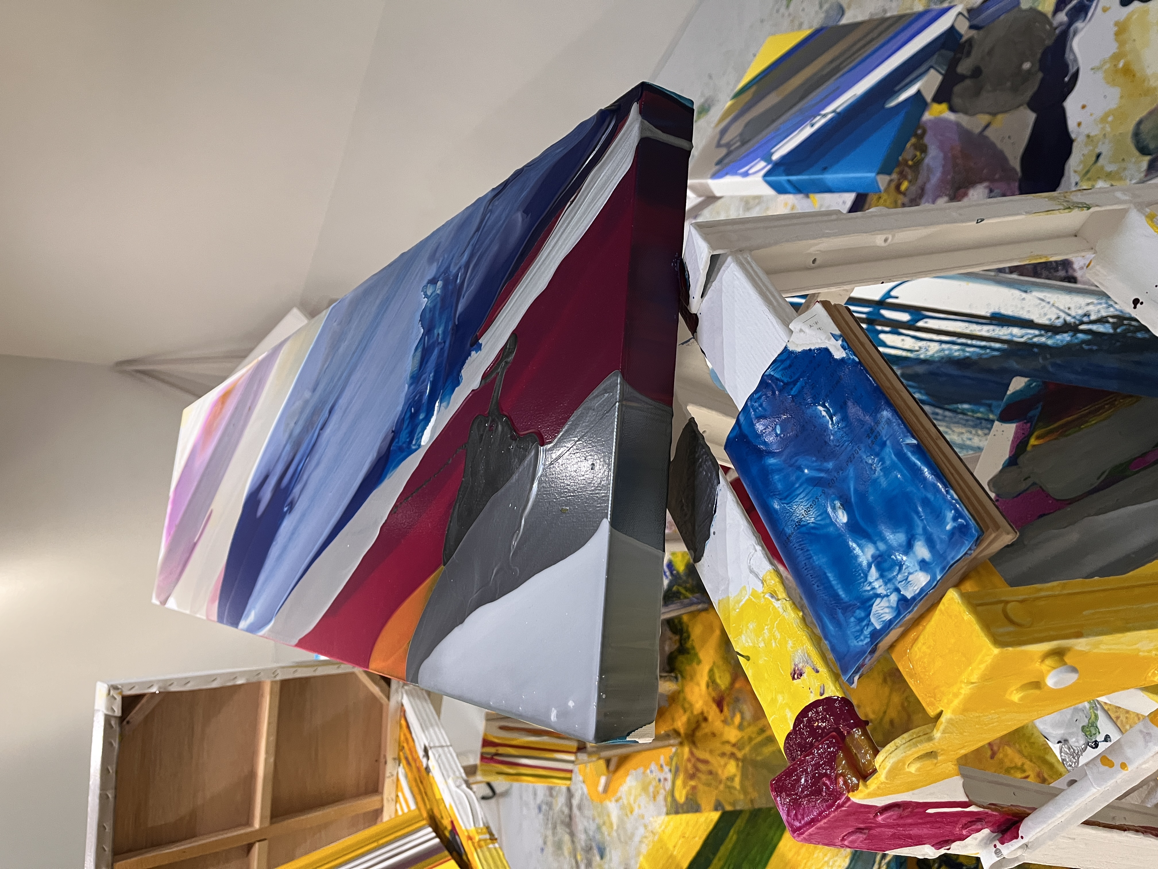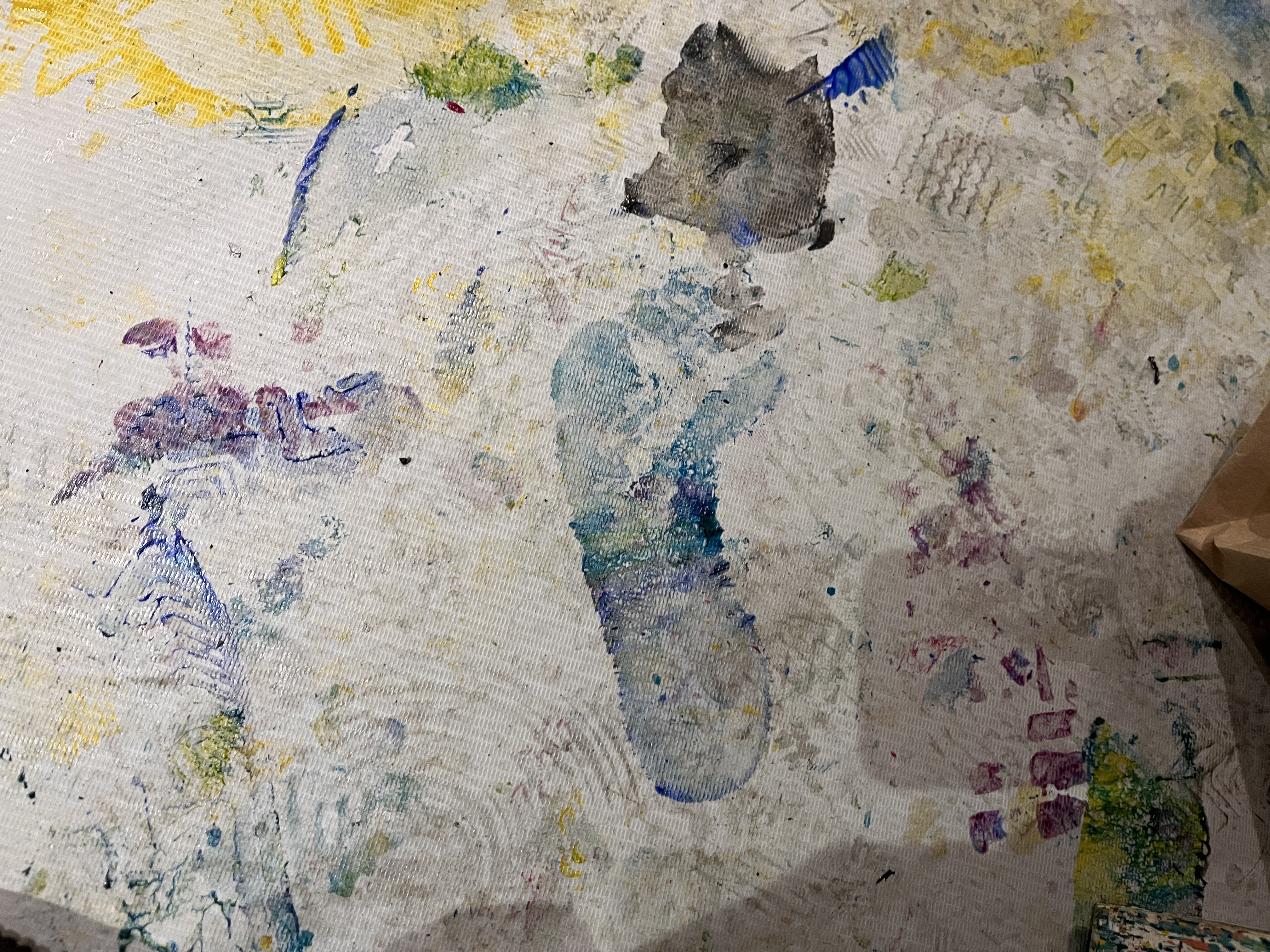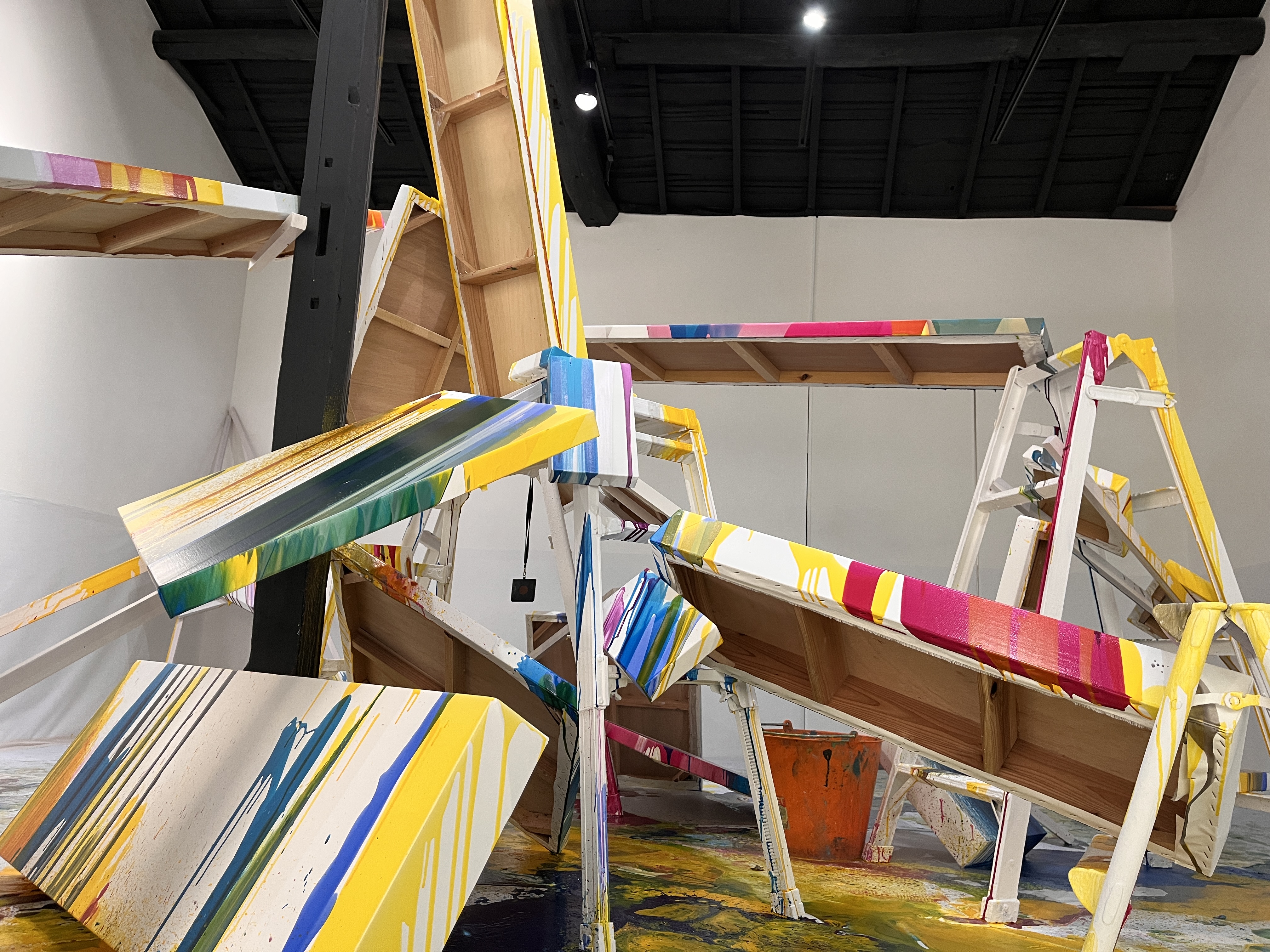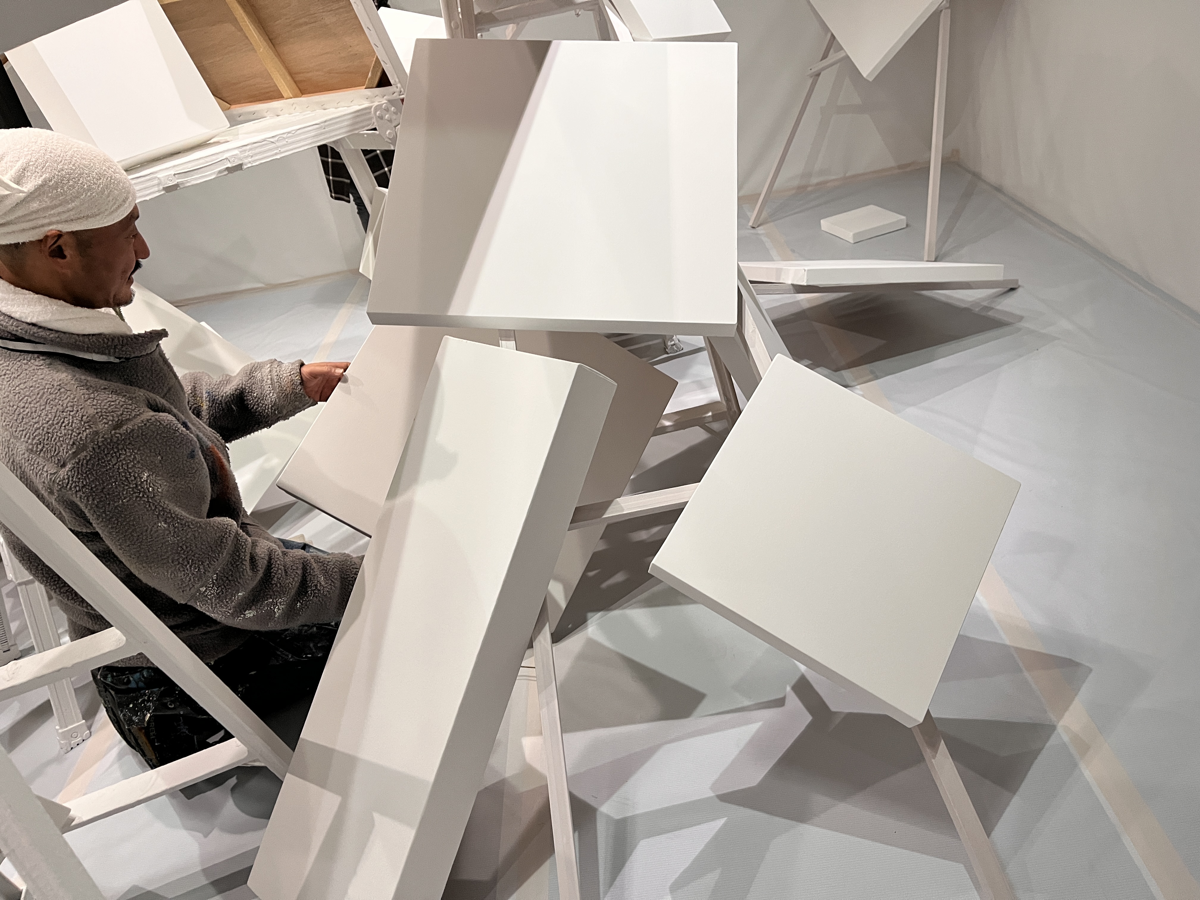 +1artがある空堀という地域は、大坂城の南西を守護する外堀のあったところ。大阪市の中央部にありながら戦災を免れたこのエリアには、長屋が並ぶ路地が迷路のように繋がっています。美術x演劇「103歩のエラー」と題した本展は、この町の同じ路地の中にあるギャラリー(+1art)と(中島麦の)アトリエ、その間をつなぐ路地裏が舞台となります。この2つの地点は103歩で辿り着ける80mほどの短距離。会期中はこの路地裏を参加者に往来してもらいながら共同で作品をつくります。抽象絵画の制作を通してその可能性を形にしてきた中島麦、演劇という観点から様々なシーンに挑んできた赤星マサノリ、この二人のコラボレーションでセッテイングされた作品つくりのための舞台は予期せぬエラーを生み、前代未聞の展覧会と化すことでしょう。
